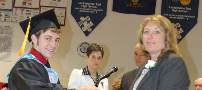 Commended Student Cameron Crock, Salutatorian Aliza Furneaux, Valedictorian Colleen Brace Hat Toss Senior Class President Aliza Furneaux Senior David Brown receives his diploma from Board Member Carol Selwood. Seniors Taryn Maleski and Bryce Kongvold share their tears after graduating.