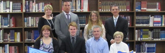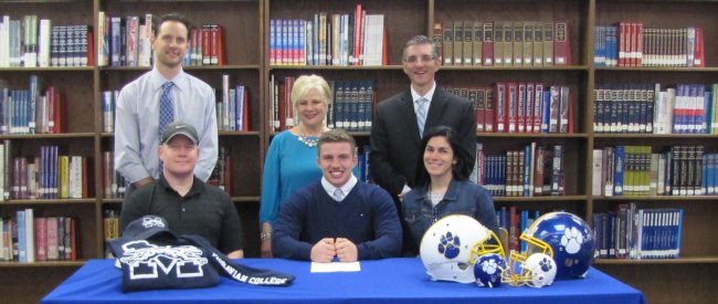 Valley View High School Gage Bennett will continue his academic and football career at Moravian College. Picture standing left to right: Mr. George Howanitz, Valley View Head Football Coach; Mr. Larry Pegula, Valley View High School Assistant Principal Sitting Left to right: Brian Bennett, Father; Gage Bennett; and Stacey Bennett, Mother