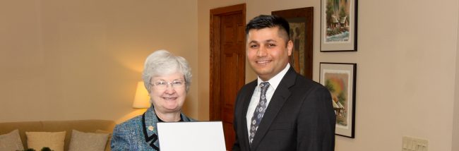 Marywood University’s President Receives a Certificate of Appreciation from the Kurdish-International Youth Organization SCRANTON, Pa—Sister Anne Munley, IHM, Ph.D., president of Marywood University, recently received a certificate of appreciation from the Kurdish-International Youth Organization’s foreign relations chief and Marywood University graduate student, Hemn Mamrash. The certificate was given in appreciation of Sister Anne’s support…