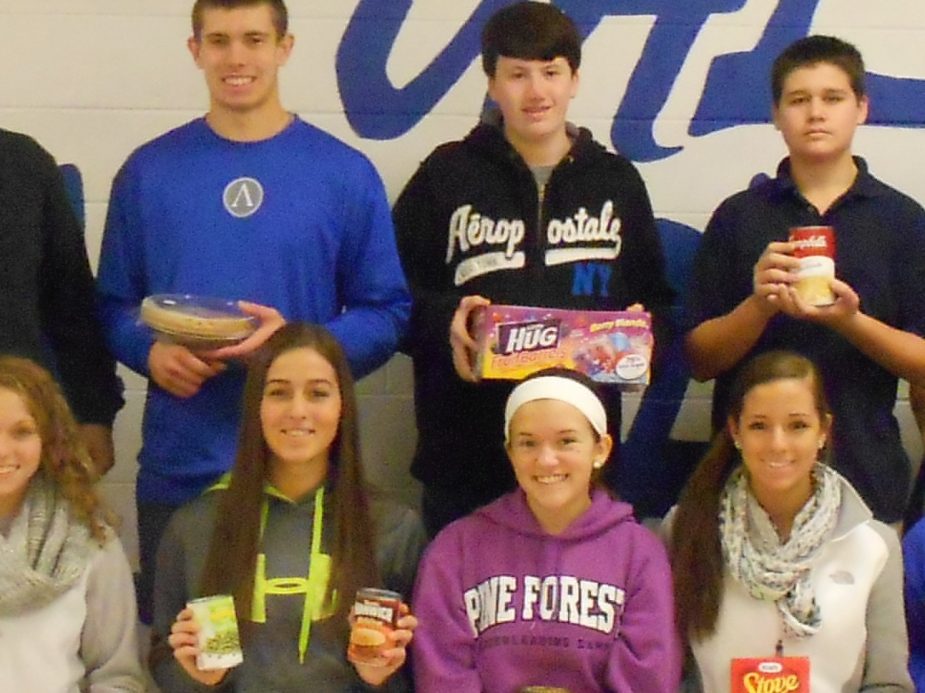The Mid Valley Student Council recently held its annual Thanksgiving Food Drive. This year the students were assisted by Boy Scout Troop 73 of Throop. Students in the school collected enough food and turkeys to deliver Thanksgiving baskets to 25 families in the community. Kneeling (left to right): Joseph Chieffallo, Nicole Hughes, McKenzie Runco, Ashley…