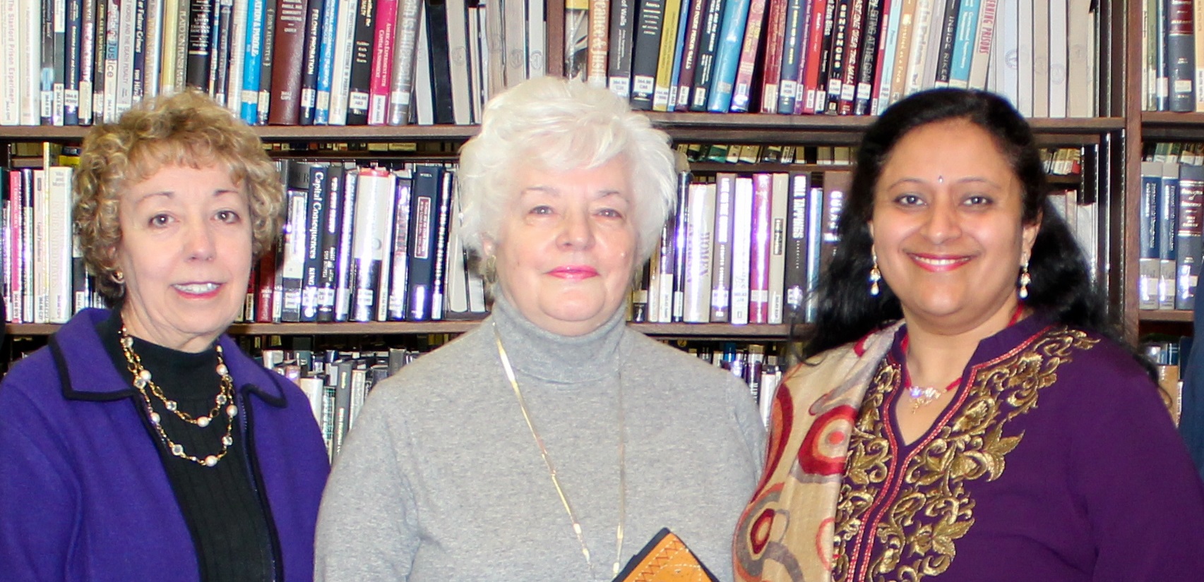 Susan R. Reilly, director of lifelong learning; Joan Kryzanowski, president of lifelong learning board; Mary Jane Memolo, lifelong learning board member; Dipti S. Pancholy, M.D.; David Schappert, library director; Lia Richard Palmiter, Ph.D., director of diversity services.