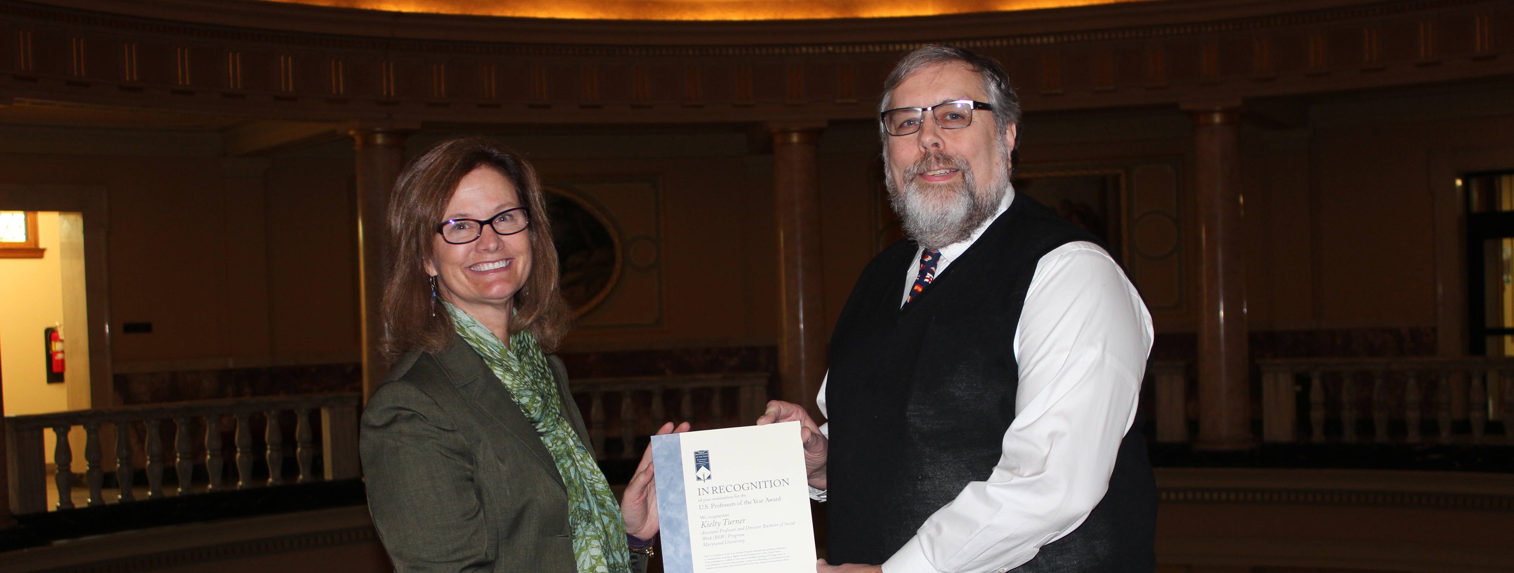 Scranton, PA (January 27, 2016)—Kielty Turner, DSW, assistant professor in the School of Social Work at Marywood University, recently received a certificate of recognition from the U.S. Professors of the Year.
