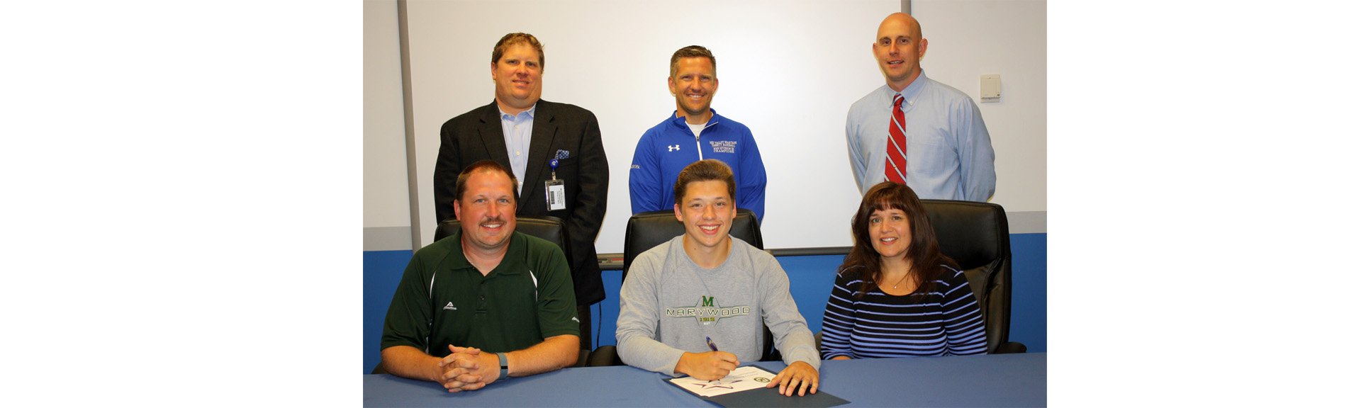 Seated from left: Ray Nemitz, father; Zach; Carol Nemitz, mother. Standing from left: Chad Vinansky, HS Principal; Ryan Kropa, Head Baseball Coach; Tom Nowakowski, Athletic Director