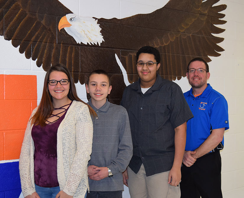 Picture attached: From left to Right: Senior Brandi Taylor, 8th Grader James Bernosky, Sophomore Francis Borove-Poole, and High School Principal Mr. Robert Presley.