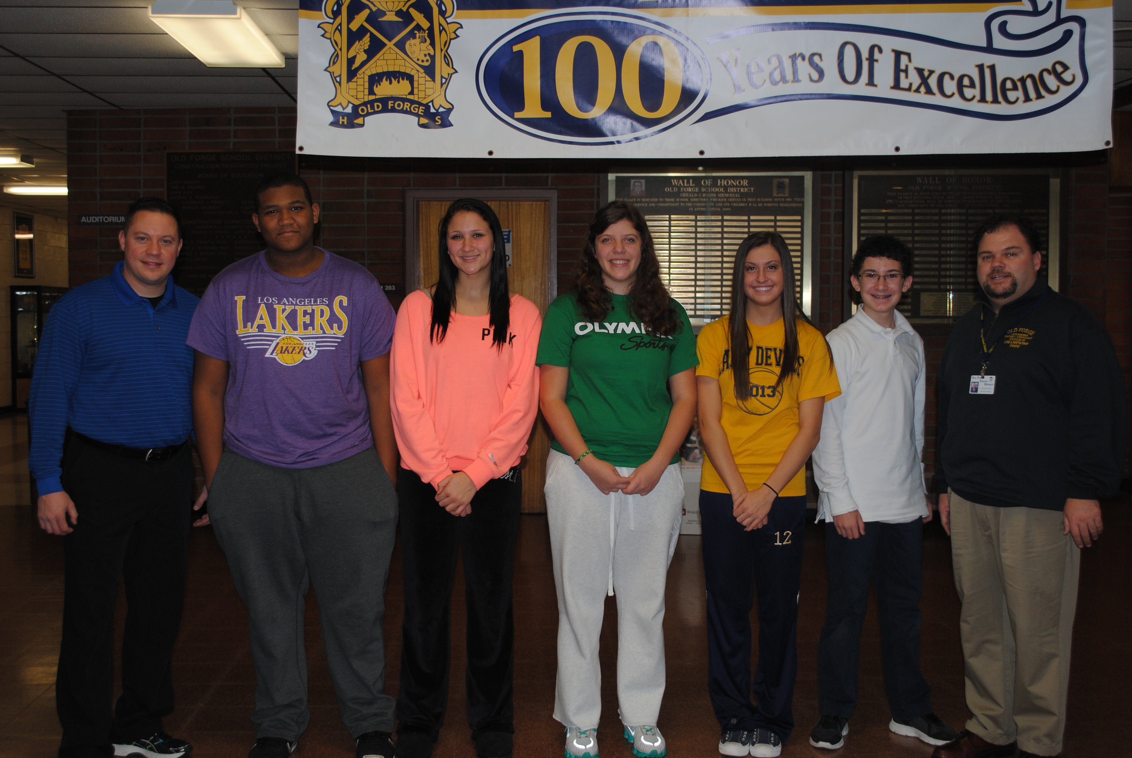 Mr. Barrett, Joel Villar- Grade 8, , Gabriella Williams- Grade 9, Melaina Pepsin- Grade 10th, Nina Pascolini- Grade 11, Jimmy Perry- Grade 7, and Mr. Thomas