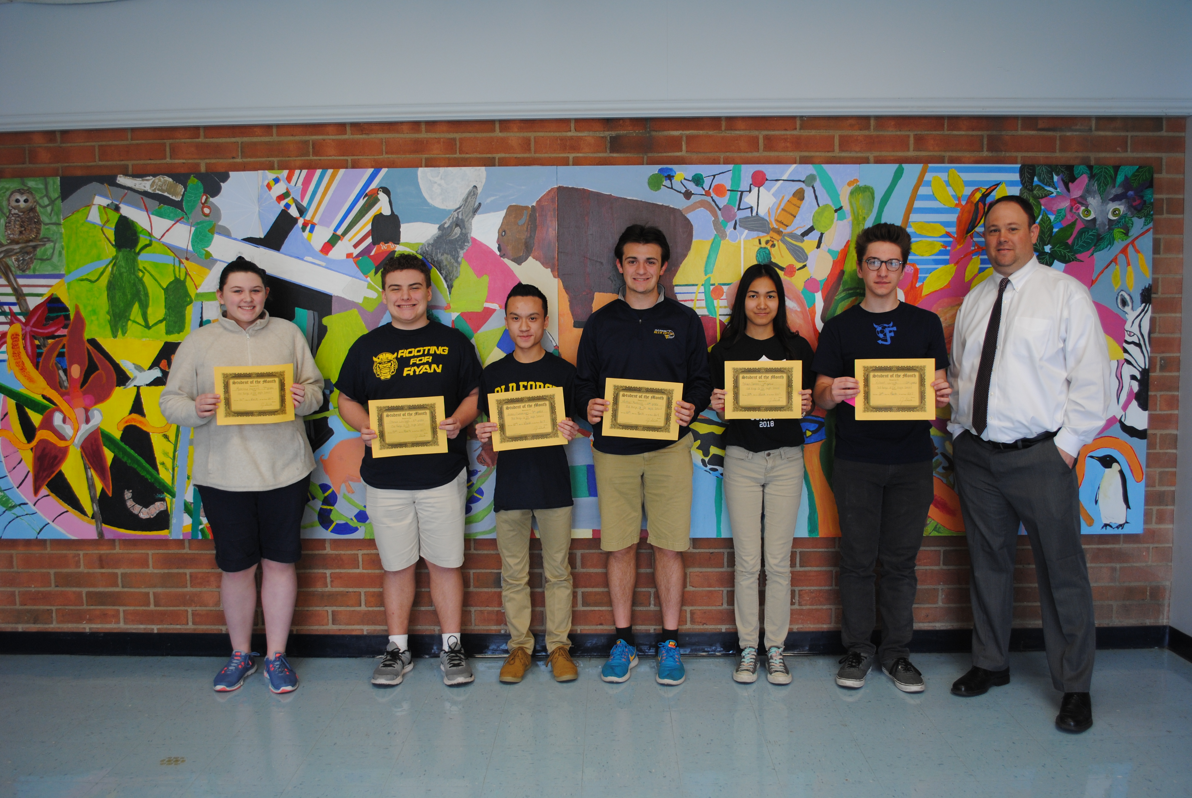 Left to Right: Madeline Hopkins – Grade 7, Chester Lenceski- Grade 8, Andrew Cummings- Grade 9, Michael Mucciolo- Grade 10, Colleen Santos- Grade 11, Robert Wormuth- Grade 12.