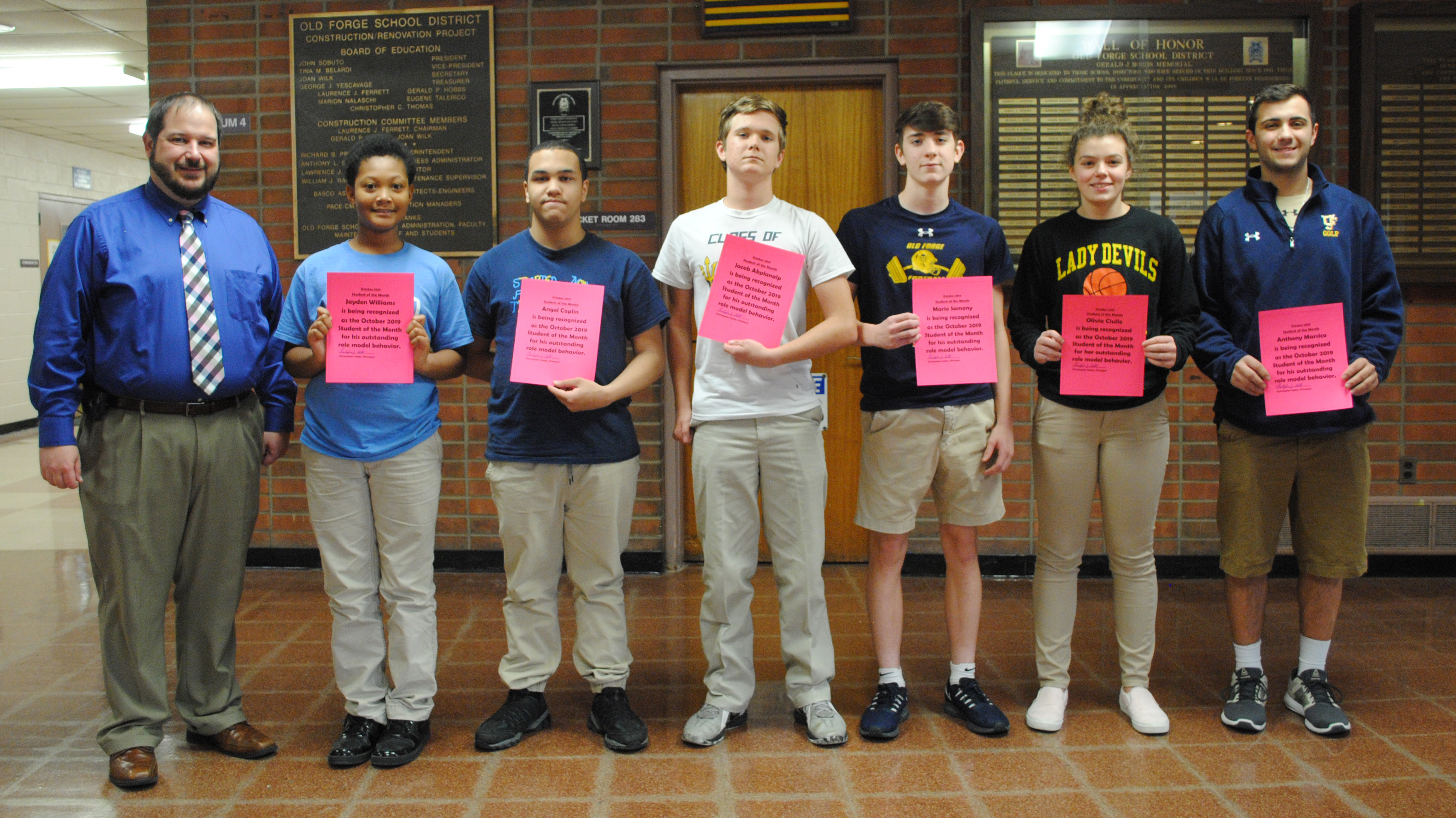 Mr. Christopher Gatto, Old Forge School High School Principal. announces October Devil Pride High School Students. The students were chosen based on their recognition for outstanding demonstrations of Devil Pride. Pride stands for Prepared, Respectful, Independent, Dependable, and Example to others.