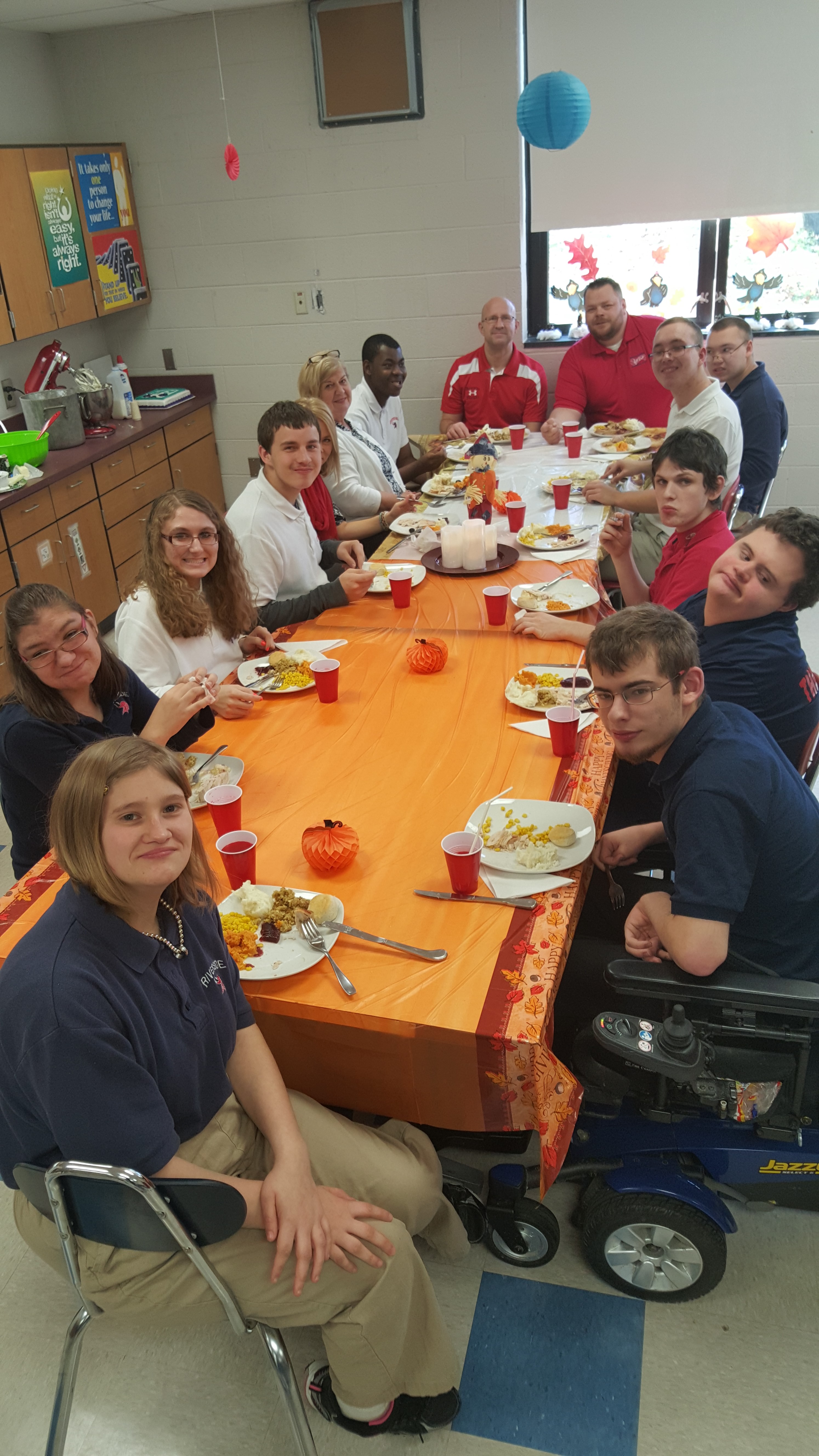 Riverside Junior Senior High School’s Life Skills class, under the guidance of Special Education teacher, Mrs. Kim Weidow, recently celebrated their 2nd Annual Thanksgiving Feast. The class compiled the grocery list for the entire Thanksgiving dinner, shopped for the supplies, prepped the meal, and cooked the turkey for the dinner.
