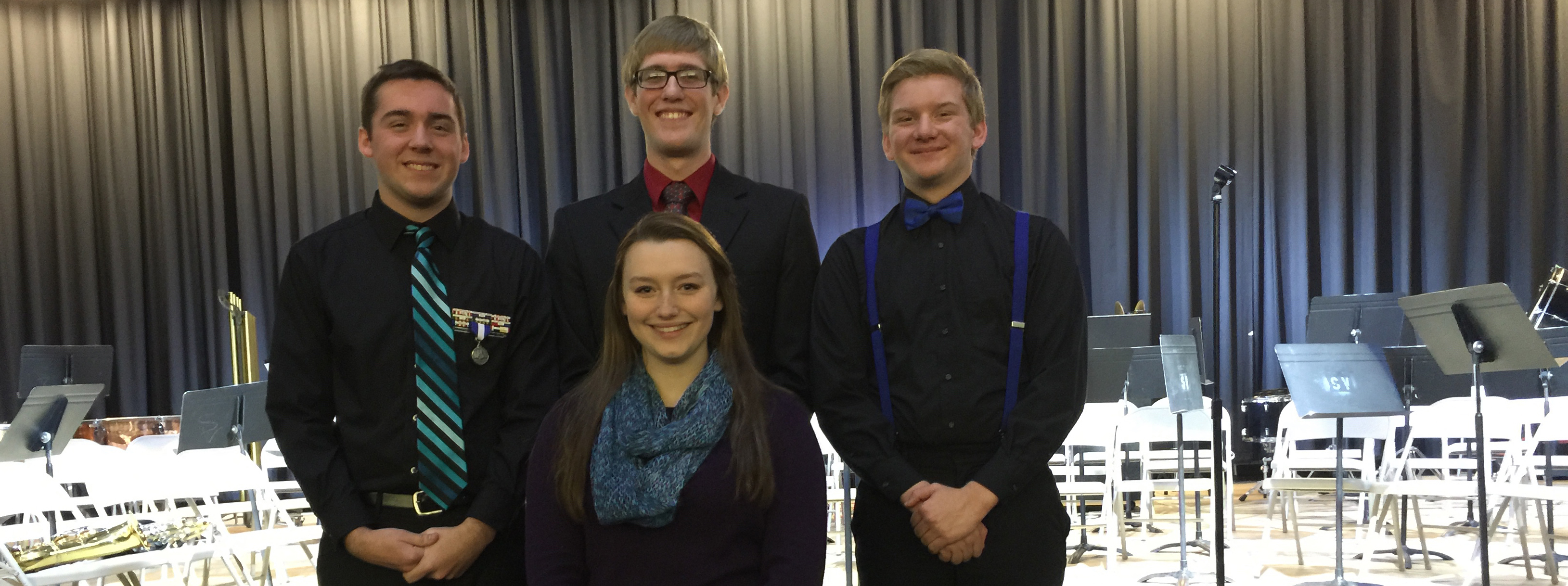 Pictured in the photo are the three Shenandoah Valley students will participate in the upcoming Schuylkill County Chorus Concert which will be held at the Tamaqua Area High School on February 21, 2015. Front Row: Meghan Artley. Back row: (L-R): Rocco Roguskie, Music Director Walter Choplick, & Chris Swantek.