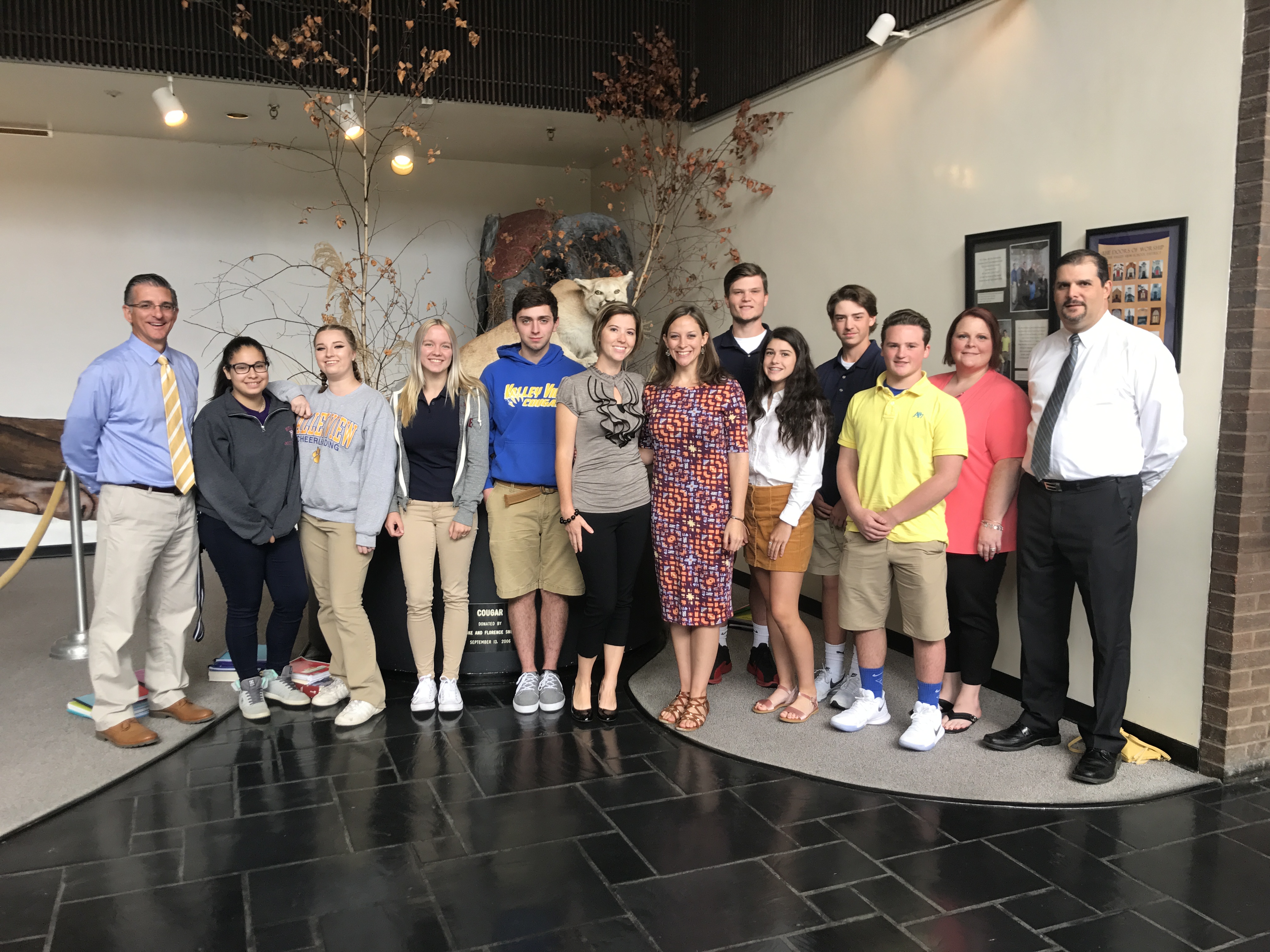 Pictured left to right: Mr. Larry Pegula, Valley View High School Assistant Principal, Valley View Students’, Caroline Bailon, Sable Dushney, Claudia Casarin, Seth Trichilo, Christine DeSousa.LPC presenter; Mandy Doria.LPC, presenter; Valley View Students’, Thomas Singer, Lainey Kamora, Dom Verrastro, Kyle Novajosky, Mrs. Morgan Englehardt; Valley View Guidance Department; Mr. Chris Mendicino, Valley View High School Principal.