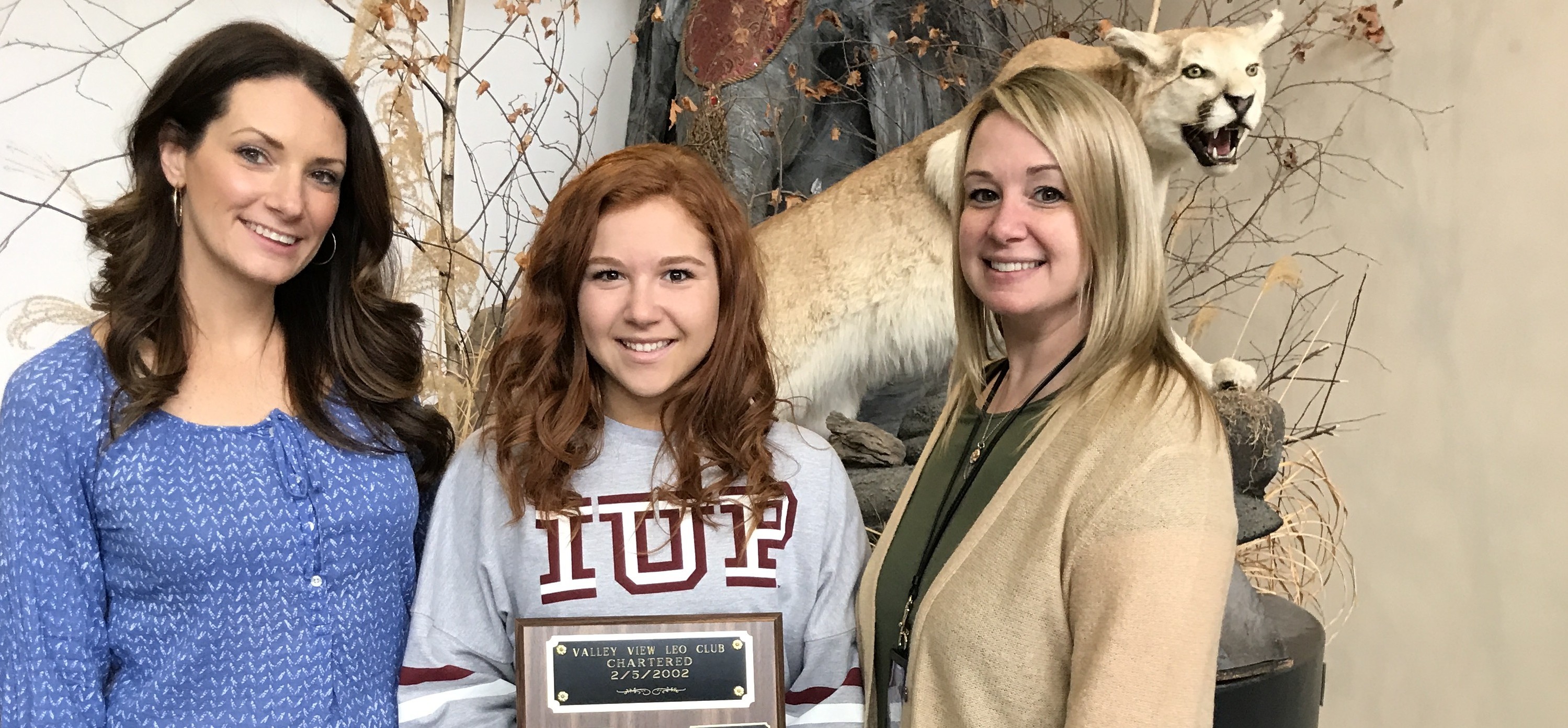 Pictured left to right are: Melissa Snyder, Valley View High School Leo Club Adviser; Natalie Palevac, Valley View Leo Club District 14-H award winner; and Jamie Zaverl, Valley View High School Leo Club Adviser.