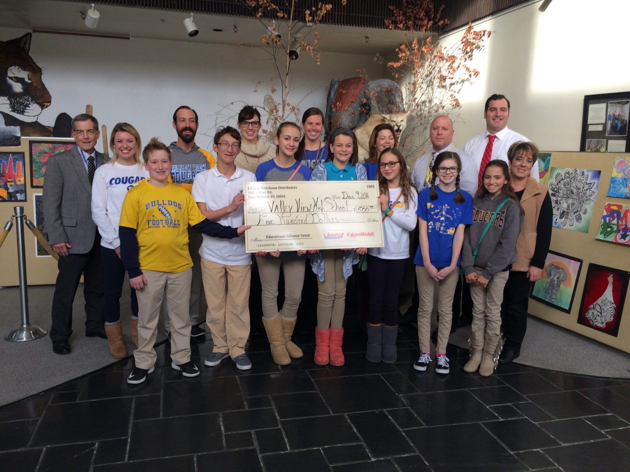 Valley View Middle School Science Department accepts the ”Exxon Mobil Educational Alliance Grant” from Liberty Petroleum.