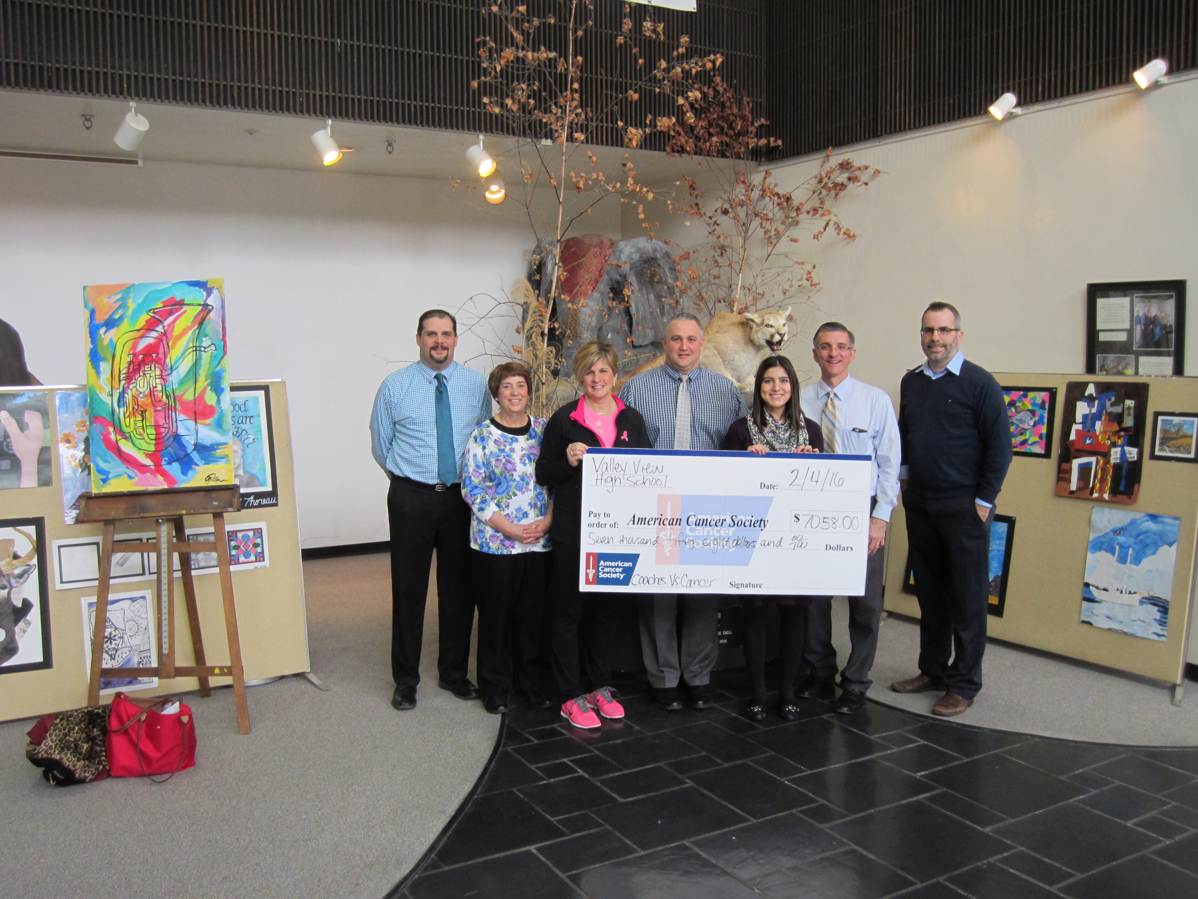 Valley View School District presents a check for $7,058 to the American Cancer Society for proceed from Coaches vs. Cancer Event. We would like to thank the Valley View community for their participated in this event.