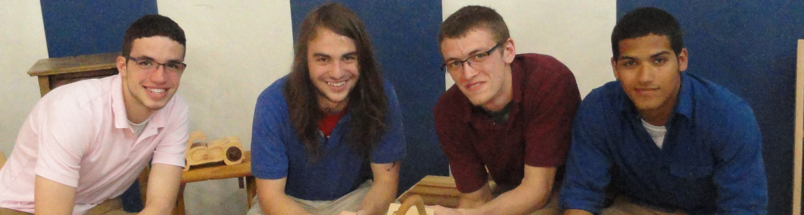 4 – Members of the Drafting and Wood classes – Antonio Cicco, Corey Lyons, Brandon Ulkoski, and Angel Ortiz – show several different examples of student craftsmanship.